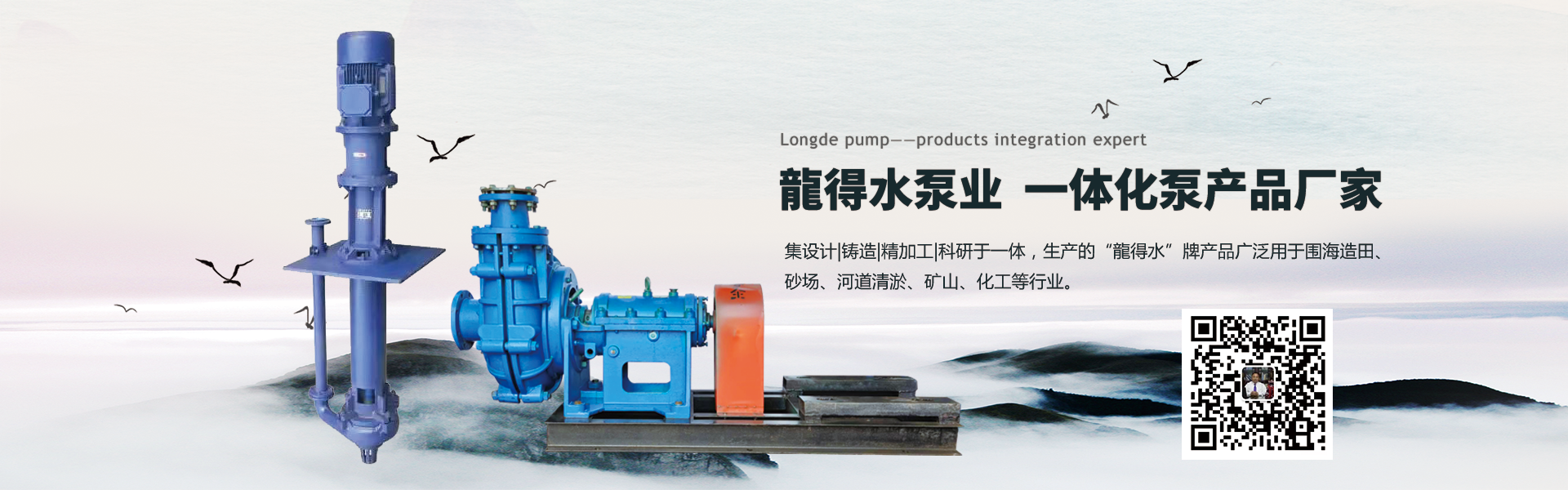 禹州市龍德水泵有限公司集設計、鑄造、金加工、科研于- -體,是一家生產泵產品制造公司。本公司生產的“龍得水”牌產品有: WN(Q)型圍海吹填大型船用挖泥泵, G、GH型大流量河道抽砂船用砂礫泵,EPN. BS型清淤筑堤填海船用高耐磨砂石泵, AH、HH、ZJ(G),ZJ(G)B、 LZ、LY系列渣漿泵,IS系列高壓清水泵,DG、D、MD系列多級清水泵, S、SH型雙吸泵,HW型大流量混流泵, PNJFA PNJB、 PNJFB系列離心式襯膠砂泵, PN、PNL系列高耐磨砂石泥漿泵, PW系列污水泵,PS系列吸沙泵,打井、打樁、壓濾機,加氣磚廠抽水泥立式泵,農用噴灌泵,船用污水泵,船用抽砂泵,不銹鋼系列化工泵,船用掛槳機,浮箱式柴油機型泵用水沖挖藕機,潛水吸砂泵,單缸,雙缸、BW150三缸BW250三缸注漿泵,智能型150三缸注漿泵、智能型250三缸注漿泵,頂管,盾構配套高耐磨砂石、鵝卵石泵等。廣泛用于圍海造田、砂場、河道清淤、礦山、化工、地礦、有色金屬、石油、電業、煤炭、選礦、陶瓷、非開挖、盾構等行業。